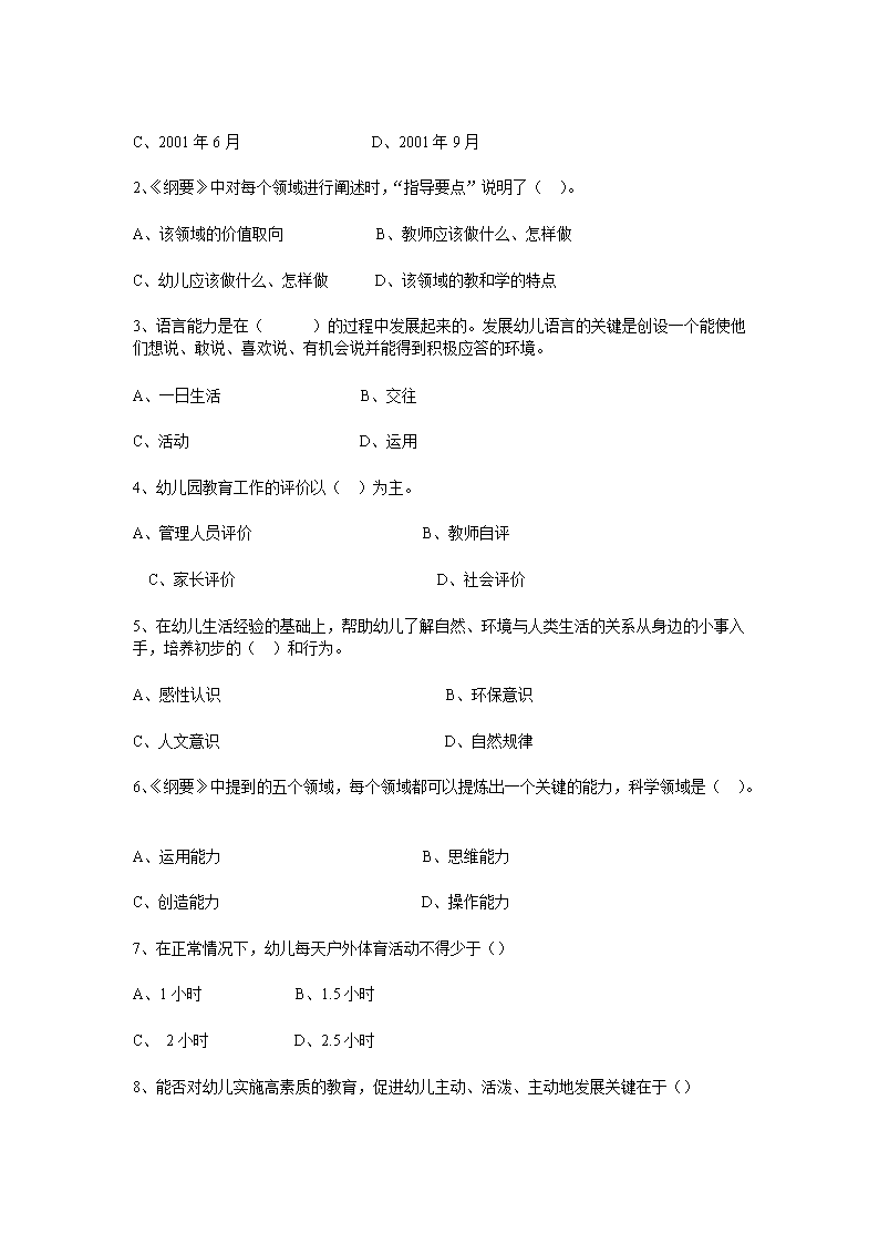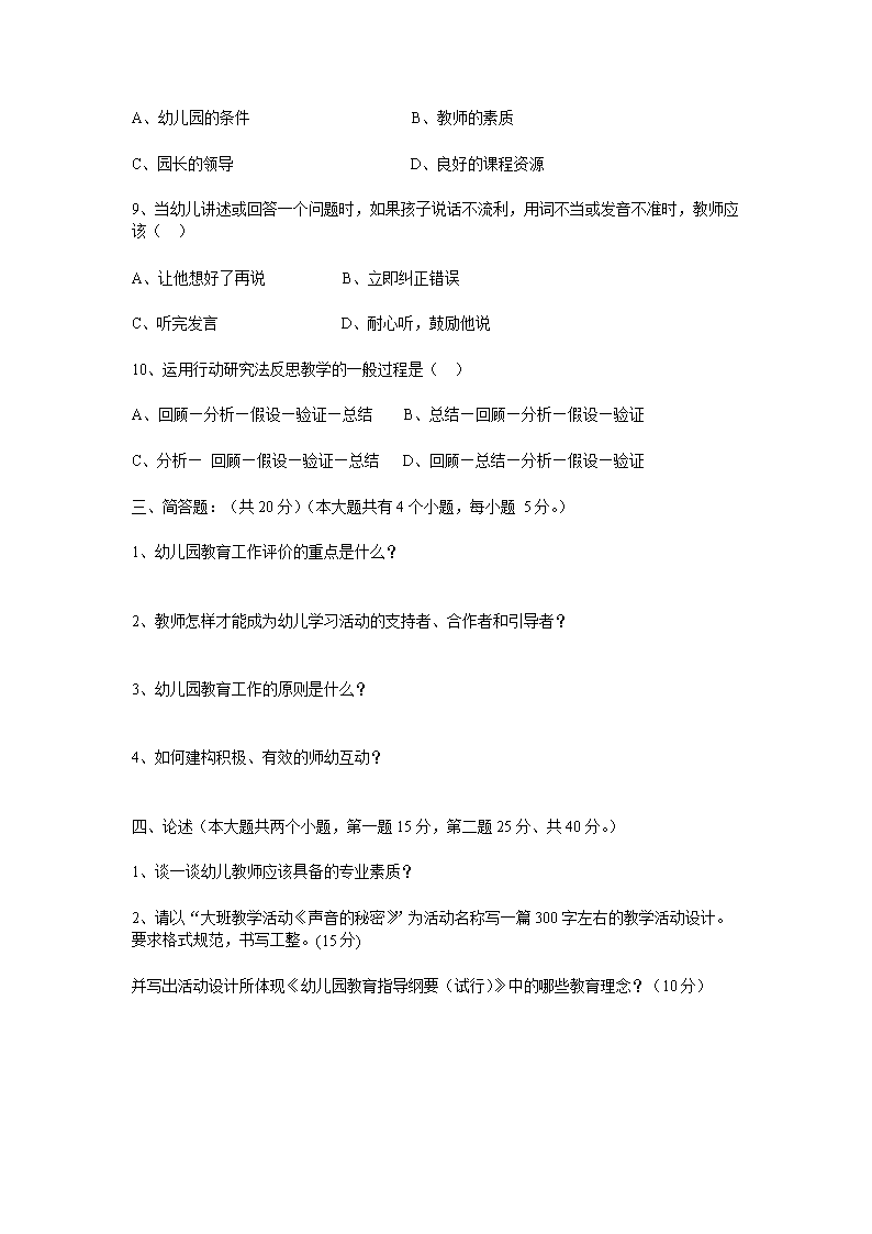 【文档名称】2011年山东济宁市任城区幼儿园教师招聘考试试题(Word版)