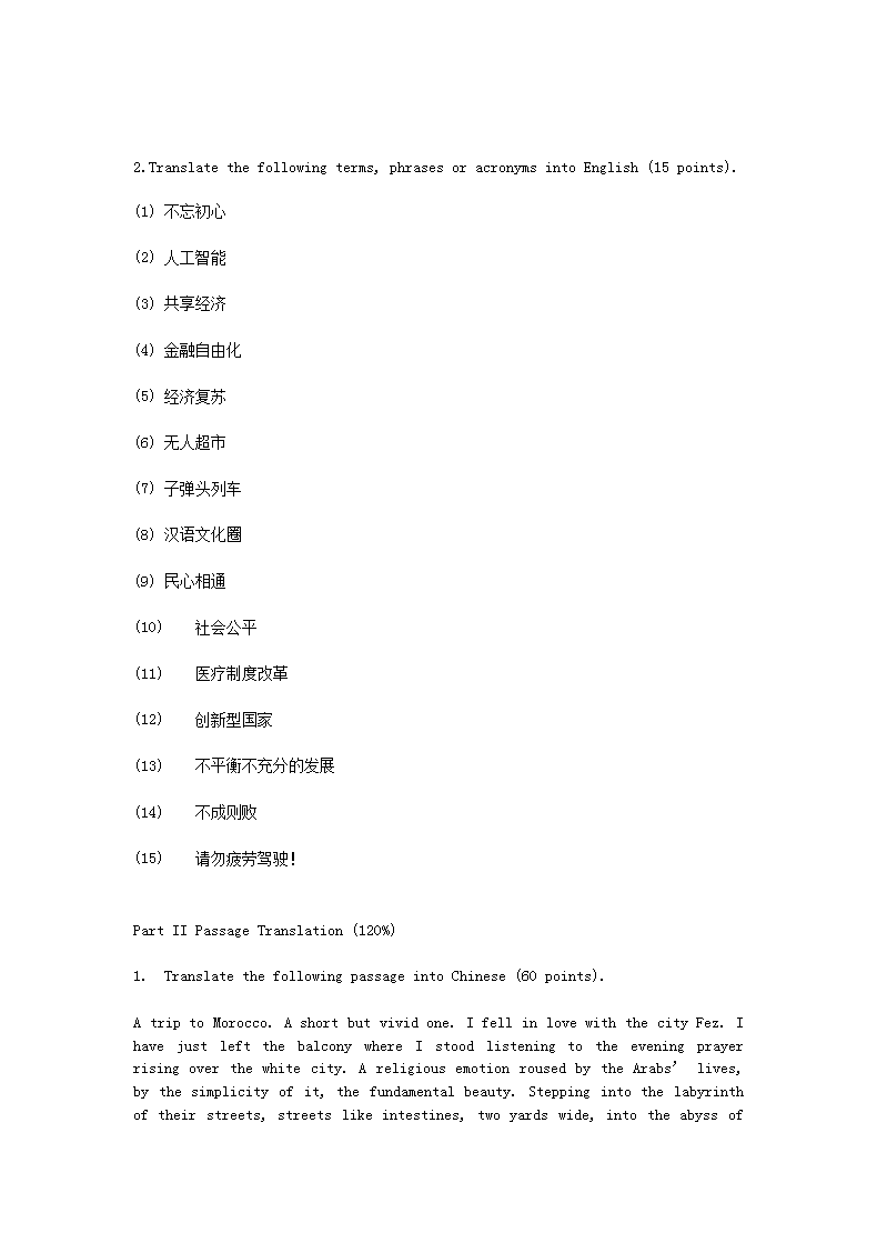 【文档名称】2018年广西民族大学英语翻译基础考研真题A卷(Word版)