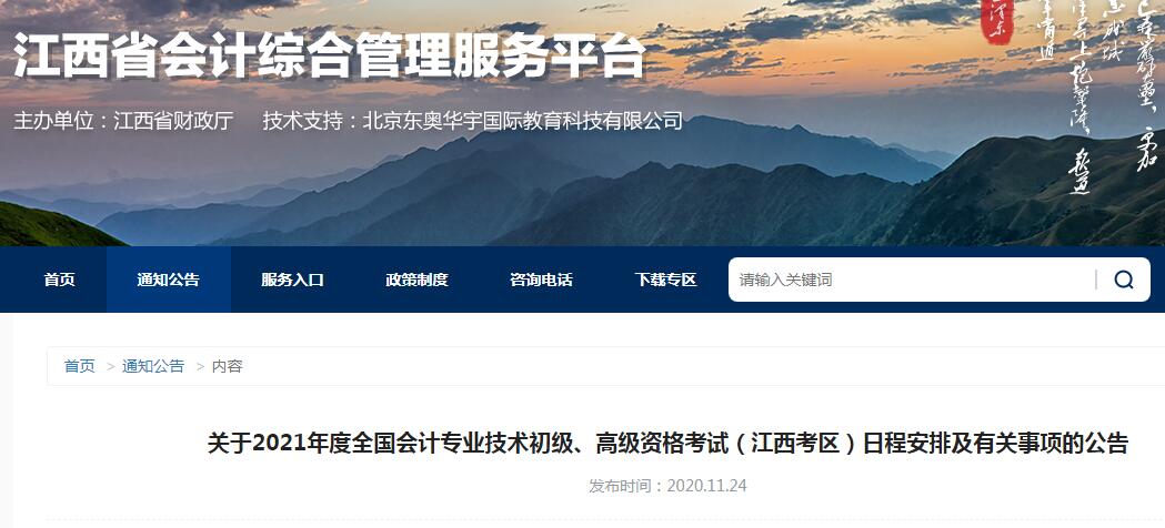 原公告:2021年江西省初级会计职称考试报名日程安排及有关事项的公告