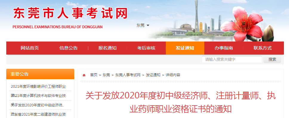 2020年度初中级经济师、注册计量师、执业药师职业资格证书现正发放,考生请凭有效身份证原件领取(代领的须凭代领人及证书持有人的有效身份证原件领取)。