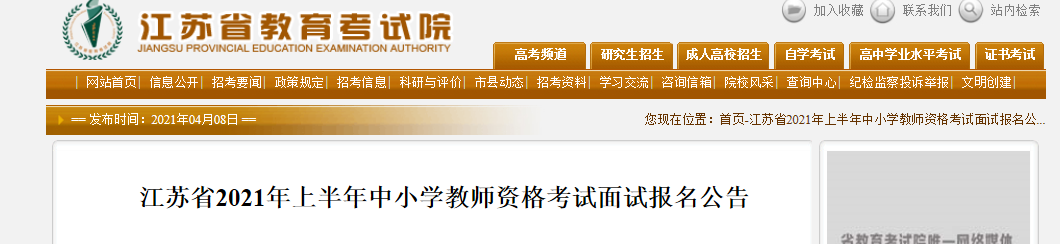 2021年上半年中小学教师资格考试面试将于5月15日至16日进行,现将江苏省报名有关事项公告如下。