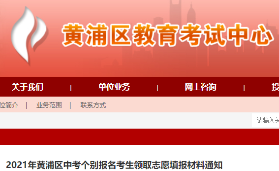 2021年上海黄浦区中考个别报名考生领取志愿填报材料通知