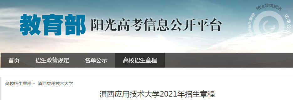 【导语】®无忧考网从教育部阳光高考信息公开平台获悉,滇西应用技术大学2021年招生章程已公布,具体详情如下: