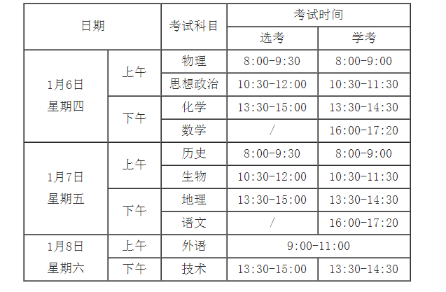 考试科目:思想政治、历史、地理、物理、化学、生物、技术(含信息技术、通用技术)。