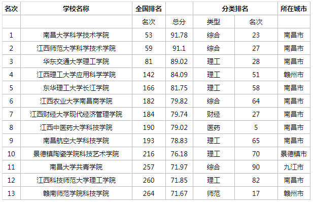 在最新公布的江西省民办大学排行榜中,江西科技学院雄居榜首,全国排名第11,入选中国五民办大学,跻身中国一流民办大学,堪称江西省民办大学;南昌理工学院名列第二,全国排名第23。