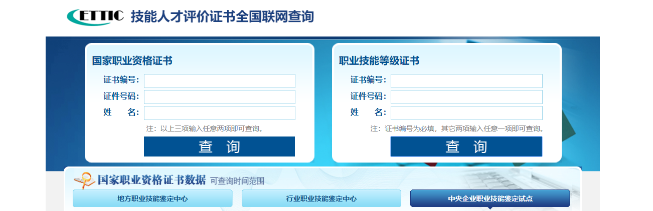 技能人才评价工作网全国联网查询:http://zscx.osta.org.cn