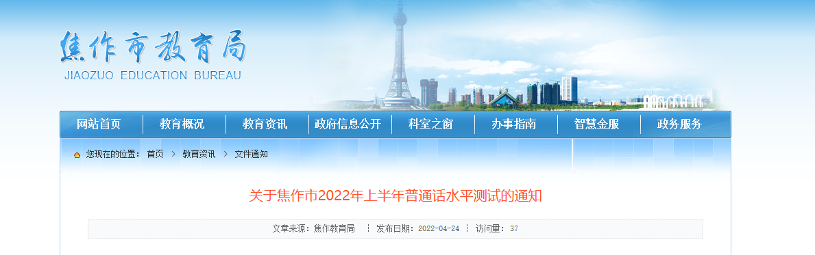 经研究,定于5月7日至8日举行焦作市2022年上半年普通话水平测试,现就有关安排通知如下。