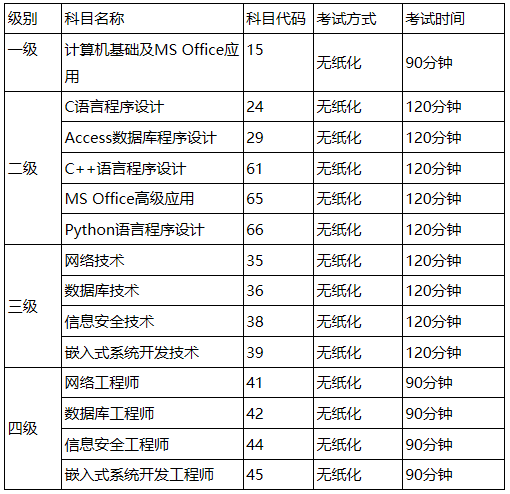 6.考生可根据自己的学习情况和实际能力直接报考一级、二级、三级任意级别和科目,报考四级科目需先通过三级对应科目考试(见中国教育考试网)。如果考生在没有通过三级相应科目考试的情况下报名并通过了四级科目考试,通过的四级科目成绩可以保留半年,考生在相邻的下一次参加并通过相应的三级科目考试后,可同时获得三级和四级证书,否则四级成绩作废。建议考生通过相应三级科目考试后再报考对应四级科目。