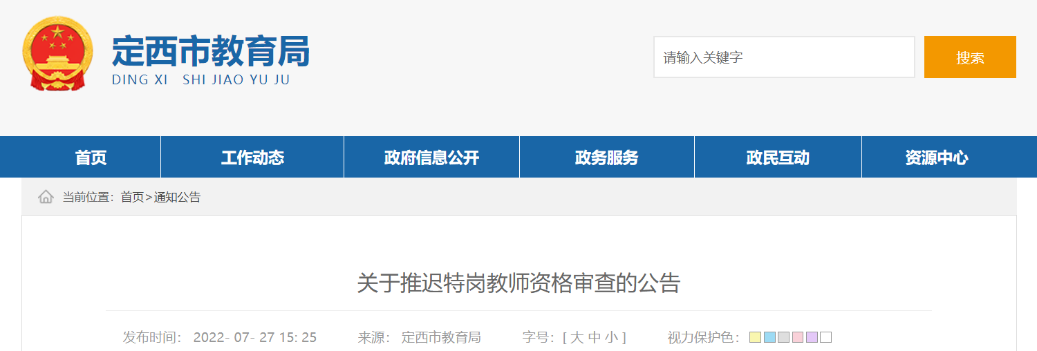 2022甘肃定西关于推迟特岗教师资格审查的公告