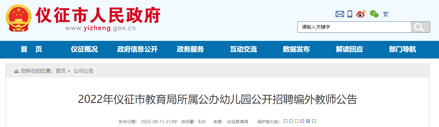 为了适应事业发展需要,充实幼儿园保教队伍,提升师资水平,2022年仪征市教育局所属公办幼儿园公开招聘编外教师26名。现将有关事项公布如下:一、招聘岗位