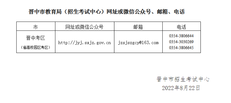 (四)按照疫情防控属地化、动态化管理原则,考生必须密切关注山西招生考试网(http://www.sxkszx.cn/)和晋中市考试部门在网站或微信公众号(附后)发布的新防疫要求,做好考前准备,因不遵守当地疫情防控要求导致无法参加考试的,责任自负。