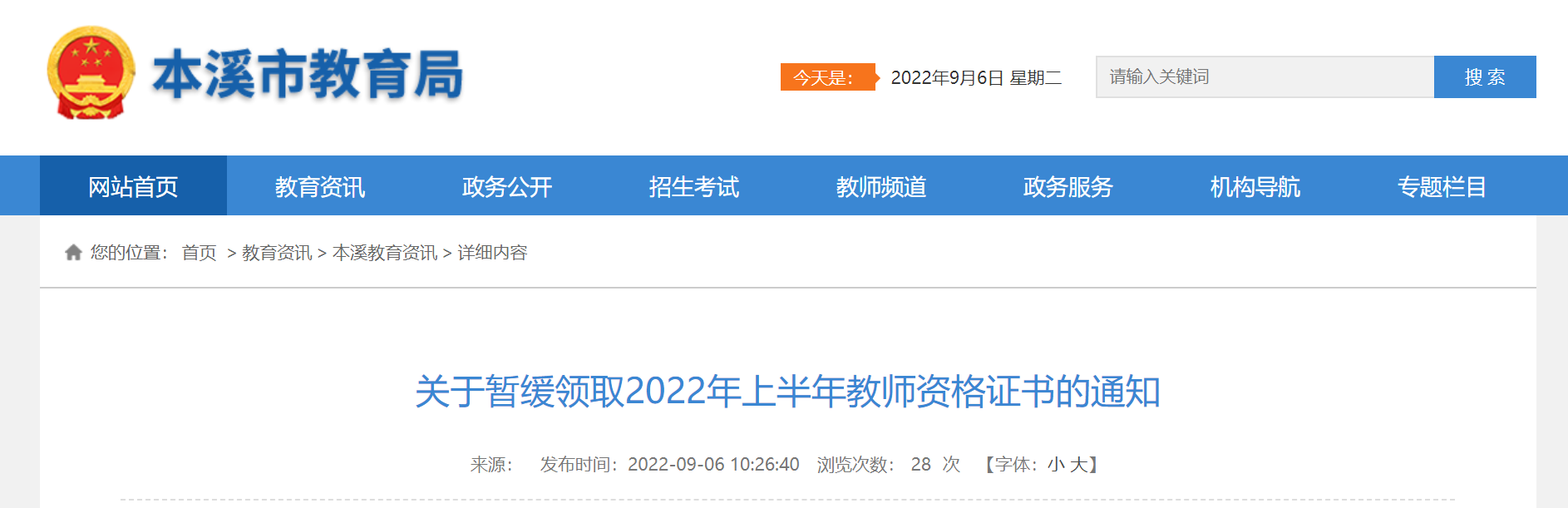 原文标题:关于暂缓领取2022年上半年教师资格证书的通知