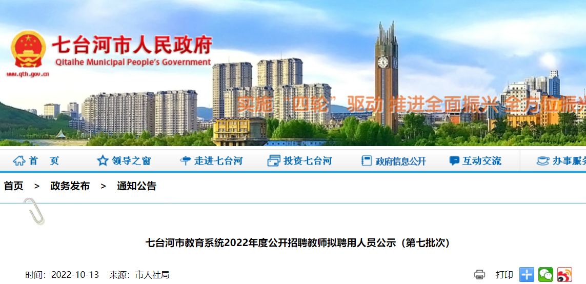 七台河市教育系统2022年度公开招聘教师拟聘用人员公示(第七批次)