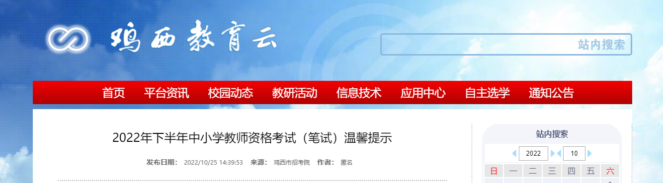 原文标题:2022年下半年中小学教师资格考试(笔试)温馨提示