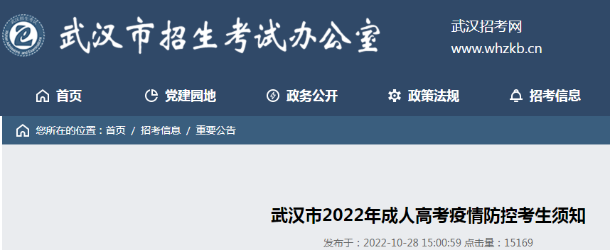 原文标题:武汉市2022年成人高考疫情防控考生须知