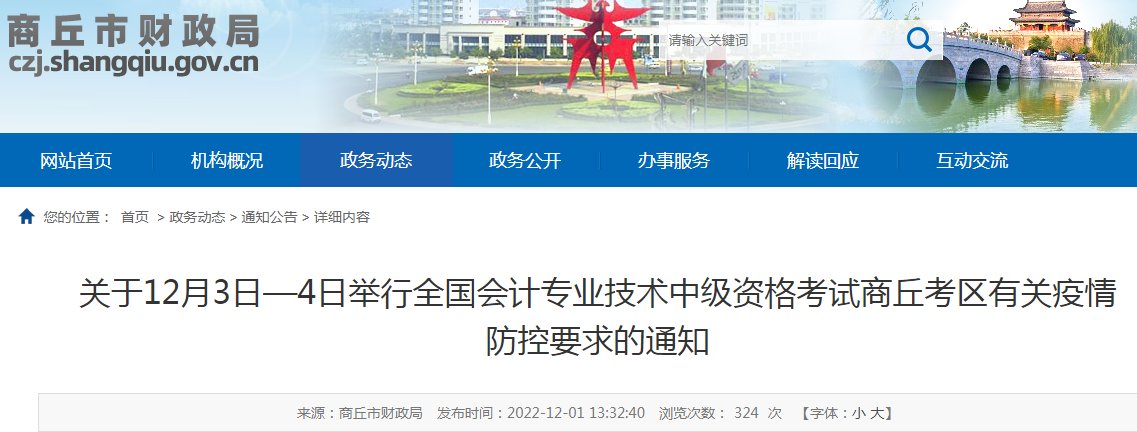12月3日、4日举行的全国会计专业技术中级资格考试商丘考区如期进行。为确保考生和考务人员安全健康,就做好疫情防控工作通知如下: