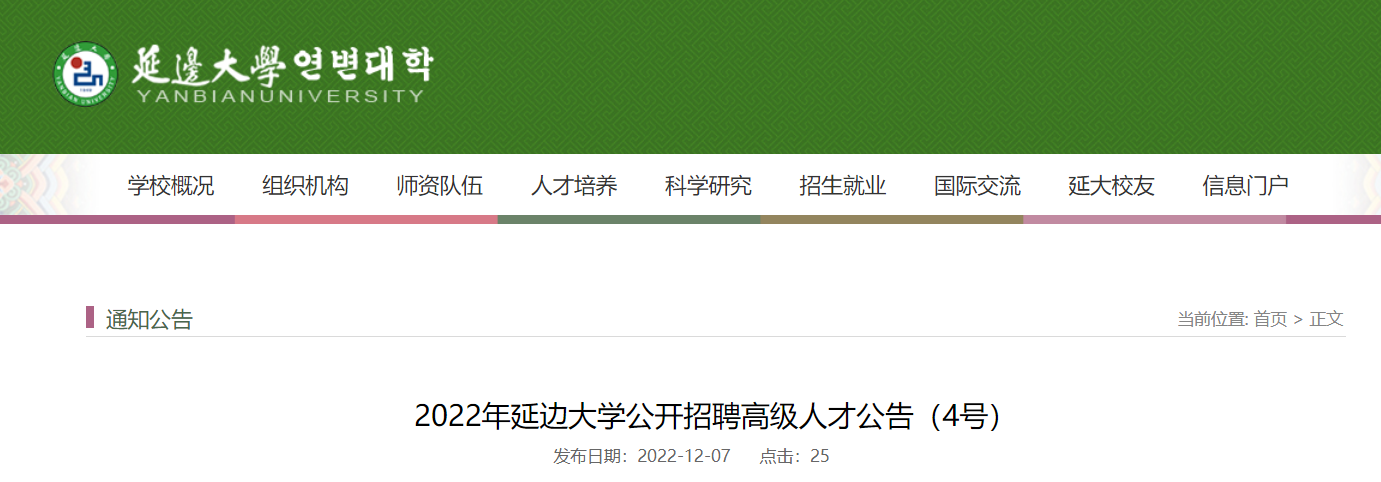 原文标题:2022年延边大学公开招聘高级人才公告(4号)