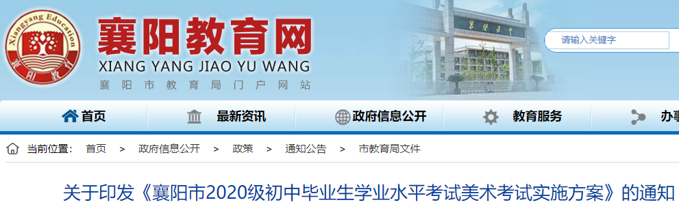 【导语】©无忧考网中考频道根据襄阳市教育局公布的《湖北襄阳市2020级初中毕业生学业水平考试美术考试实施方案》了解到,2020级湖北襄阳中考美术考试时间及考试方式已公布。具体如下:
