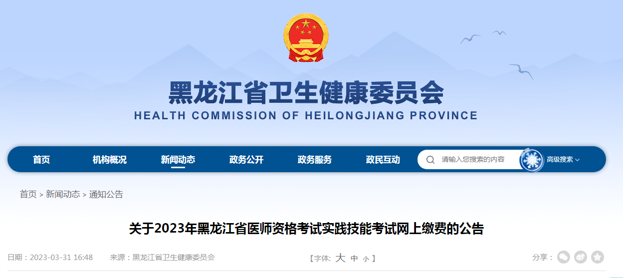 原文标题:关于2023年黑龙江省医师资格考试实践技能考试网上缴费的公告