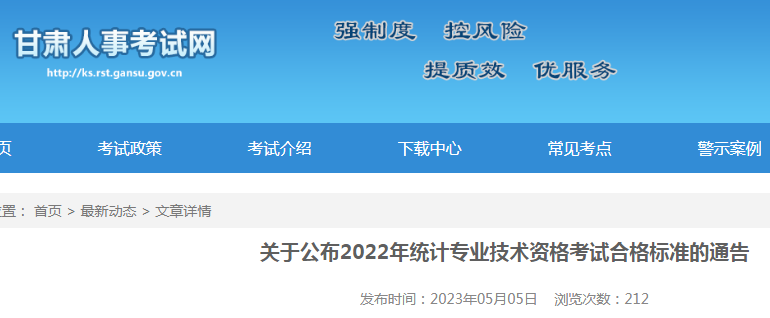 原文标题:关于公布2022年统计专业技术资格考试合格标准的通告