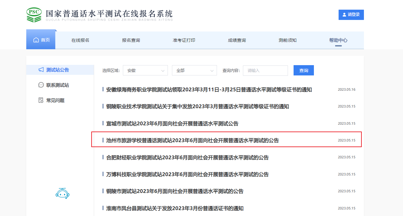 3.考生所在学校已建有测试站的请在所在学校报名;未建站学校在校学生若有测试需求可由学校语委办与安徽省普通话培训测试中心或学校所在市教育局语委办对接,统筹安排。