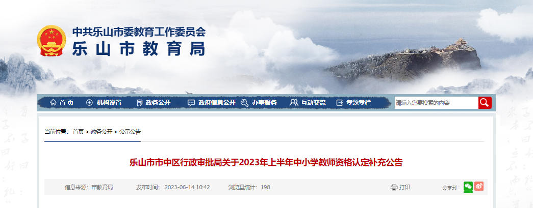 原文标题:乐山市市中区行政审批局关于2023年上半年中小学教师资格认定补充公告