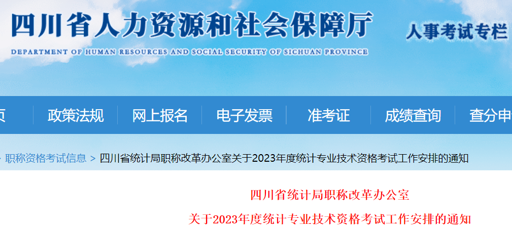 为促进统计专业技术人才队伍建设,推动统计事业科学发展,根据人力资源社会保障部、国家统计局联合印发的《全国统计专业技术资格考试办公室关于2023年度统计专业技术资格考试有关事项的通知》(统考办字〔2023〕1号)精神,现对2023年度全省统计专业技术资格考试工作安排如下: