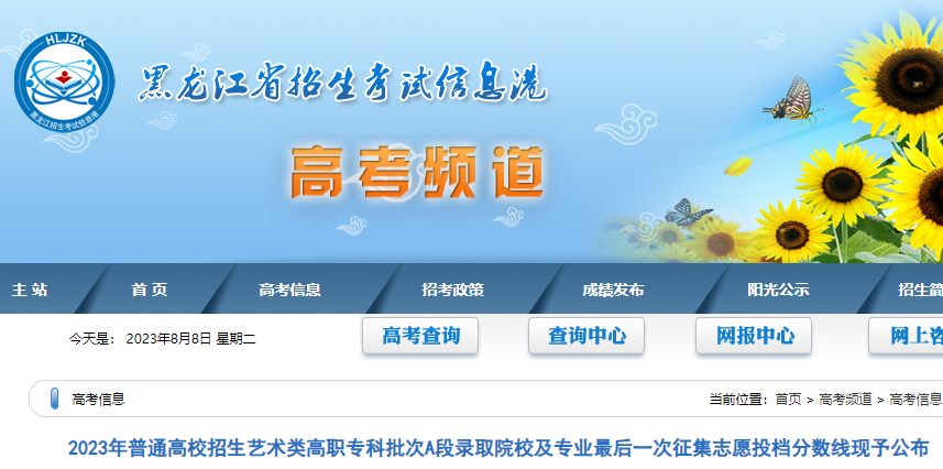 2023年黑龙江省普通高校招生艺术类高职专科批次A段录取院校及专业最后一次征集志愿于8月7日进行平行志愿投档,现公布各院校及专业最后一次征集志愿投档分数线。