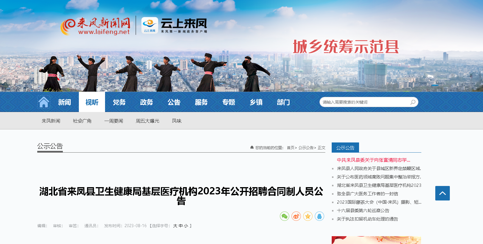 1.本次公开招聘,主要采取县域统招的方式,应聘人员“志愿到县、不到具体单位”。按照“统一规范、统一选岗”原则,由来凤县卫生健康局统一发布招聘岗位,同步组织实施招聘测试,最后根据考生成绩从高分到低分统一组织选岗。