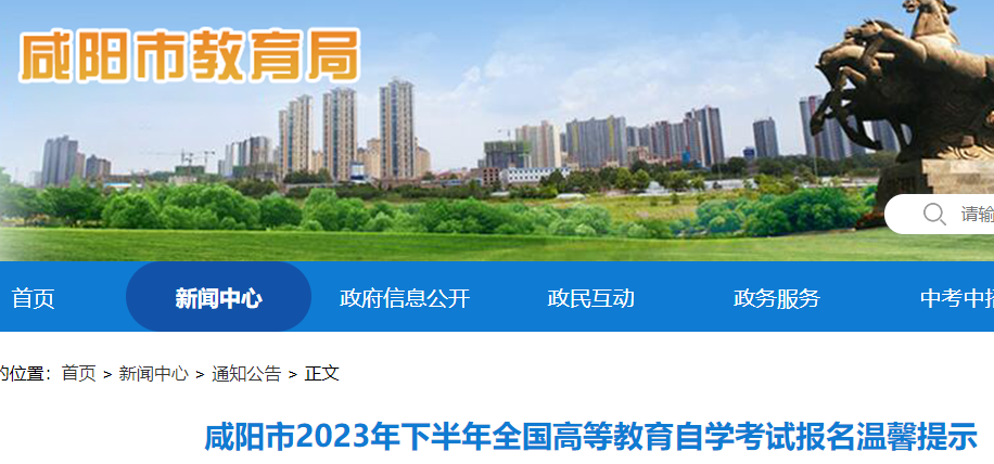 咸阳市2023年下半年全国高等教育自学考试报名工作即将开始,为了便于考生顺利报考,特提醒注意以下有关事项: