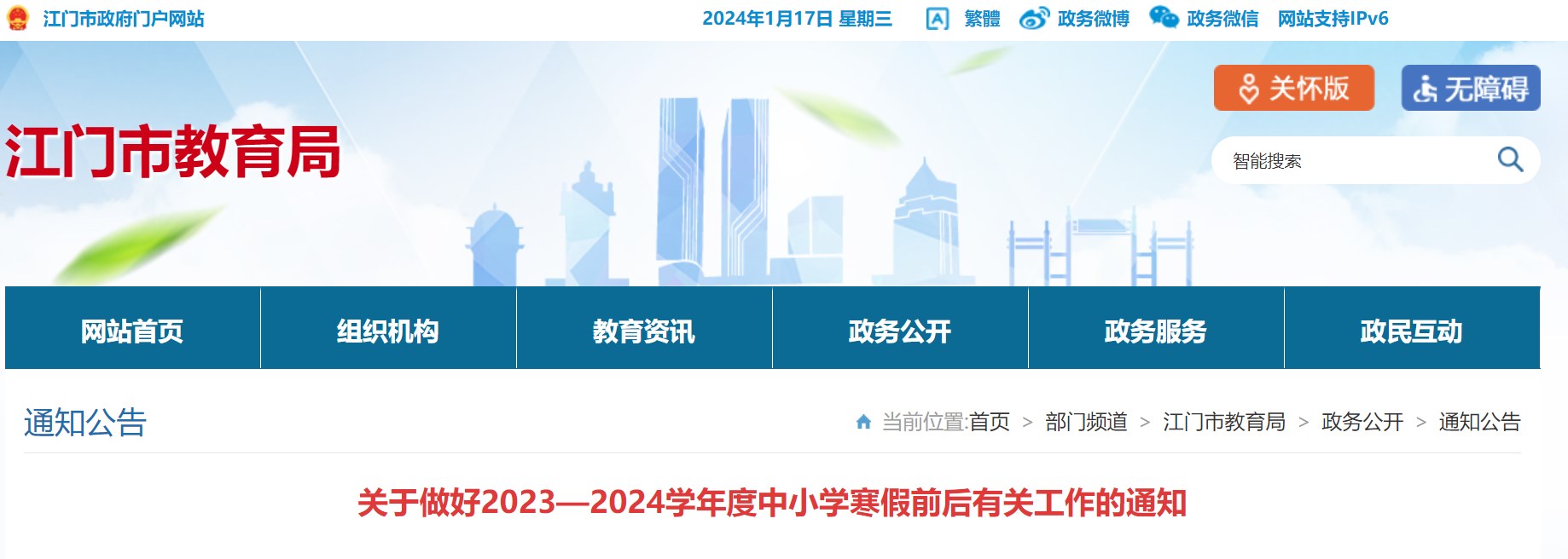 【导语】2024广东江门中小学寒假放假时间及开学时间已公布,1月21日开始放假。®无忧考网现将原公告公布如下: