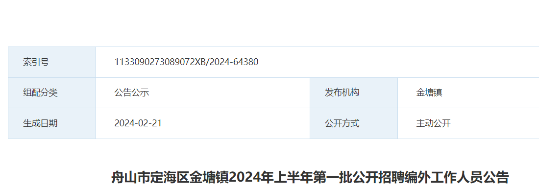 因工作需要,舟山市定海区金塘镇决定面向社会公开招聘4名编外工作人员。现将有关事项公告如下: