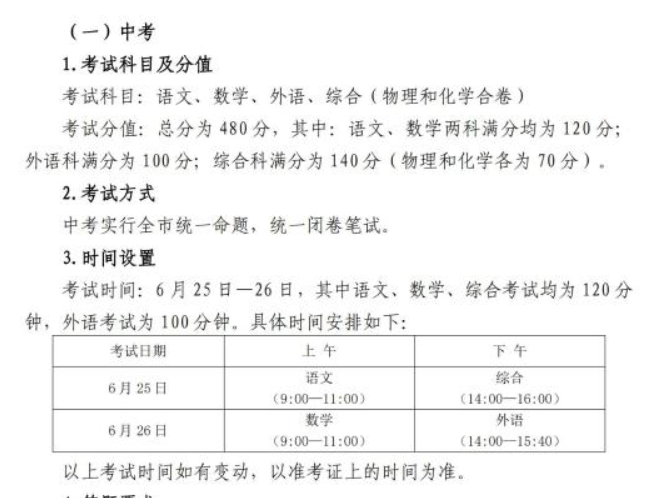 考试方式中考实行全市统一命题,统一闭卷笔试。