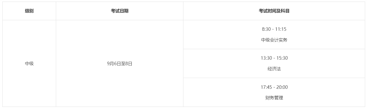 中级会计资格考试于2025年9月6日至8日举行,共3个批次。《中级会计实务》科目考试时长为165分钟,《经济法》科目考试时长为120分钟,《财务管理》科目考试时长为135分钟。
