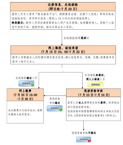 2019年7月15日10:00至7月22日,报考人员根据本人实际情况填写报名信息;确认信息真实、准确、完整;签署报考承诺书(电子文本)。