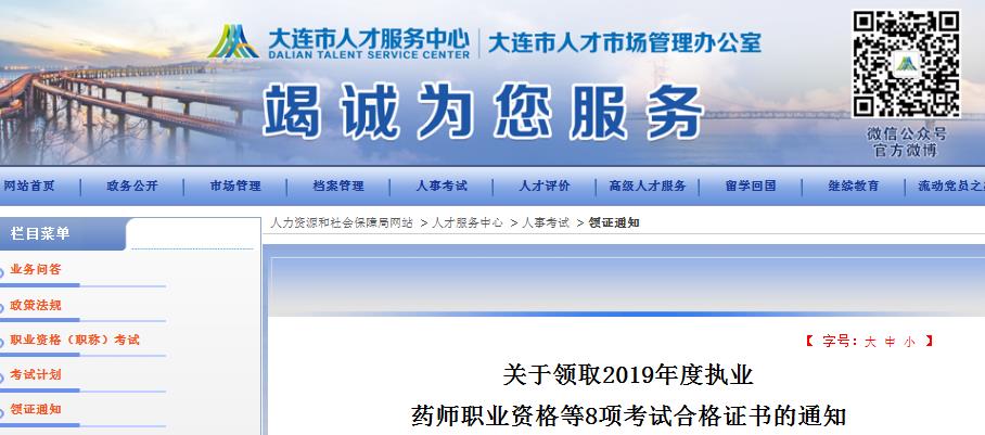 领取时间及地点:自2020年6月23日(周一至周五:8:30-11:30,13:00-16:30,法定节假日除外)起,在大连市人力资源和社会保障局(沙河口区联合路100号)一楼大厅人事考试窗口领取证书
