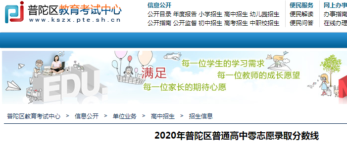 网从普陀区教育考试中心了解到,2020年上海市普陀区普通高中零志愿录取分数线已公布,为方便考了解情况,现将有关2020年上海市普陀区普通高中零志愿录取分数线情况整理如下: